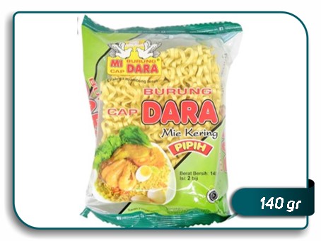 Mi kering dengan bentuk pipih yang terbuat dari bahan bahan berkualitas.