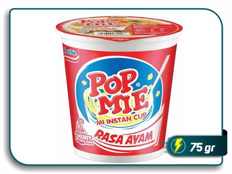 Pop Mie dengan cita rasa dan aroma ayam nikmat. Terbuat dari tepung terigu berkualitas dengan paduan rempah-rempah pilihan terbaik, serta diproses dengan higienis menggunakan standar internasional dan teknologi berkualitas tinggi. Juga dilengkapi topping