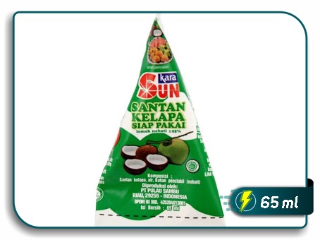 Santan kelapa siap pakai yang terbuat dari daging kelapa tua pilihan. Diproses dan dikemas secara modern.
