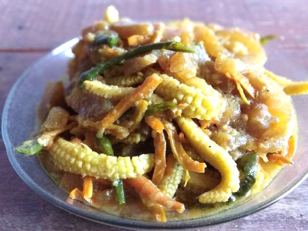 1. Cuci dan Potong Kikil rebus dan Jagung Muda sesuai selera